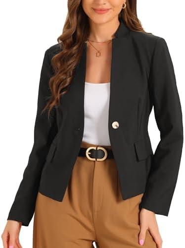 Allegra K Business ‌Casual Blazer for Women’s Notched Stand Collar Long Sleeve Button Work Blazer Suit ⁢Jacket