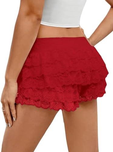 Milumia Women Layered Lace Shorts Y2k Low Waisted Tiered Ruffle Bloomer Shorts