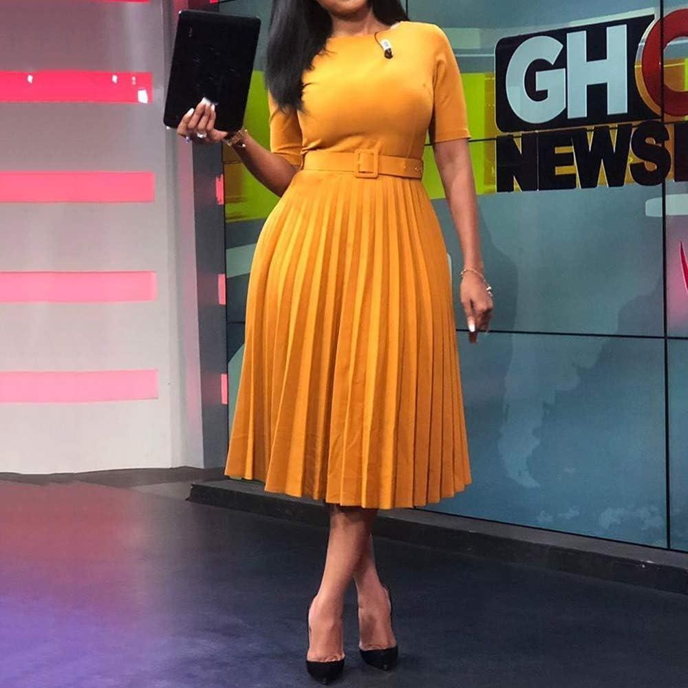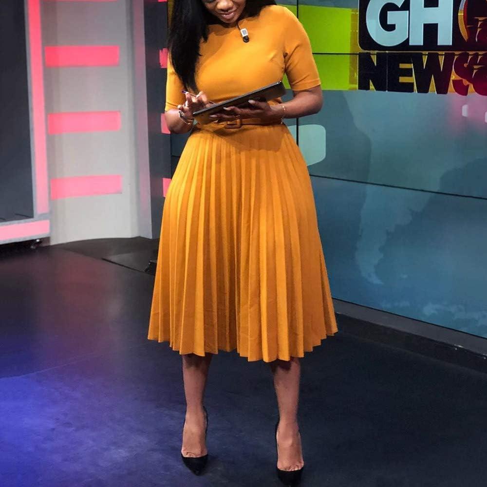 After thoroughly evaluating this dress, we appreciated its elegant yet versatile design that suits various occasions – from casual daywear to evening events.The pleated silhouette paired with a mid-calf hemline creates a flattering, flowing look while the micro-elastic polyester fabric ensures comfort without sacrificing style. The inclusion of a coordinating belt accentuates the waist and provides shape, making it an excellent choice for those looking to combine sophistication with ease. Its short sleeves and scoop neckline add to the dress’s breezy, wearable feel, perfect for all seasons, especially spring and summer. The range of sizes also caters well to different body types, ensuring a comfortable, flattering fit for many.