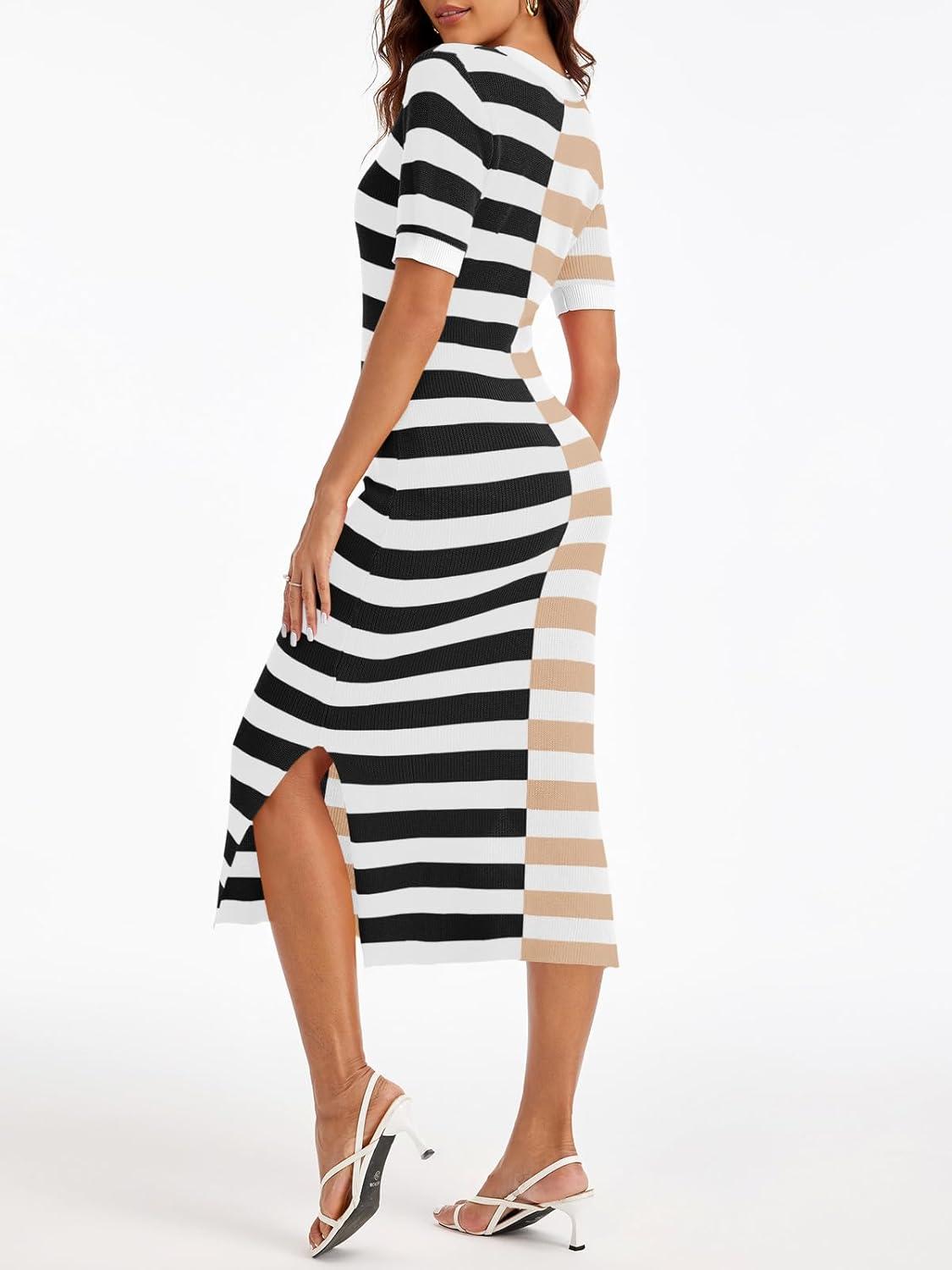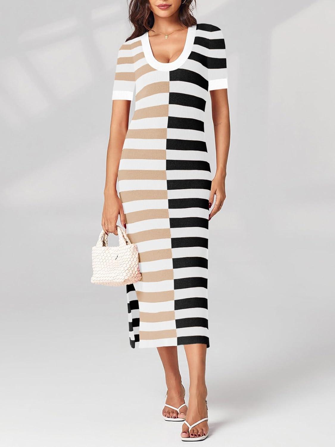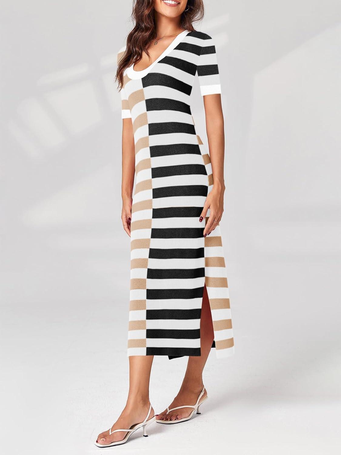 The Wenrine Womens short Sleeve Striped Dress immediately caught our attention with its blend of casual comfort and stylish design. Made from a soft, breathable knit fabric, this midi dress feels lightweight and stretchy, making it an easy choice for summer days and beyond. We appreciated how the color block stripes and scoop neck add a flattering touch, while the short sleeves and side slit give it a subtle edge. after trying it on and styling it for different occasions, we’re excited to share our honest thoughts on how this dress measures up in both comfort and versatility.