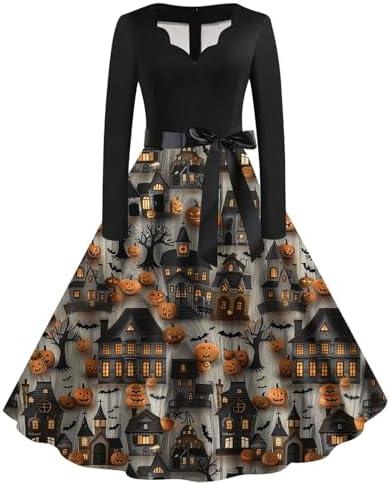 When it comes to the Womens Long Sleeve Dress Vintage 1950s Hepburn Style Prom Dress with Belt Halloween Pumpkin Print, we found a delightful mix of charm and quirks that present both advantages and drawbacks. Here’s a closer look at what we think about this spooktacular garment.