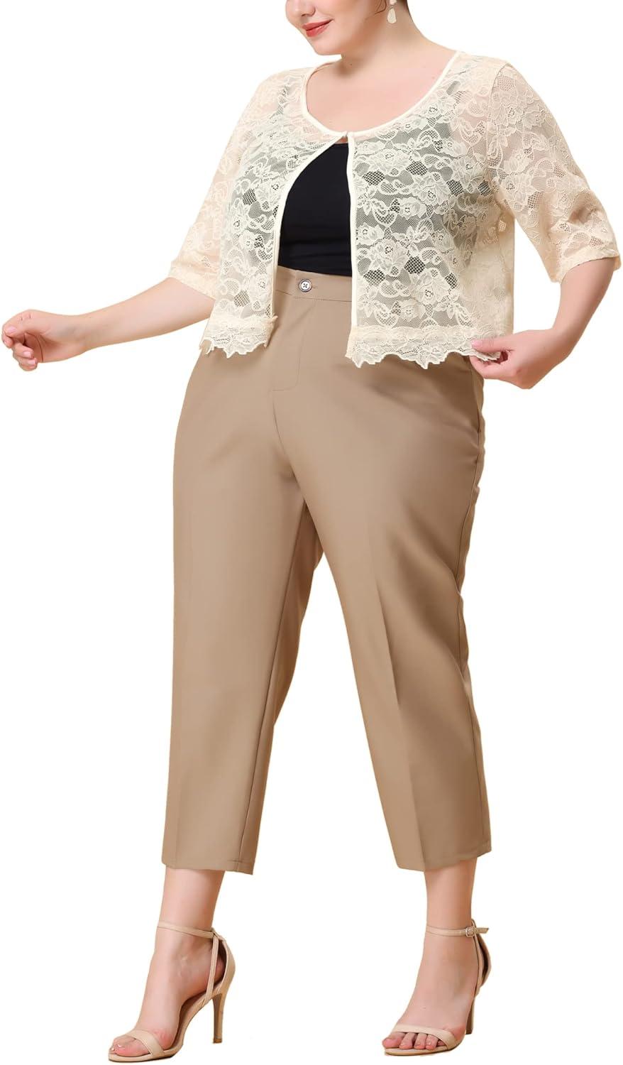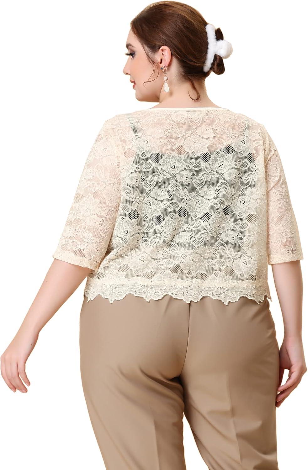 Designed with the warmer months in mind, this plus size bolero shrug perfectly balances style and comfort. Its lightweight, sheer lace fabric allows for breathability, making it ideal for summer layering without overheating. The half-sleeve cut offers coverage while remaining cool, and the delicate floral pattern adds a soft, feminine touch that effortlessly elevates casual and dressier outfits alike. Whether you’re heading to a garden party or simply want a chic cover-up on a breezy evening,this piece complements a variety of wardrobe staples.