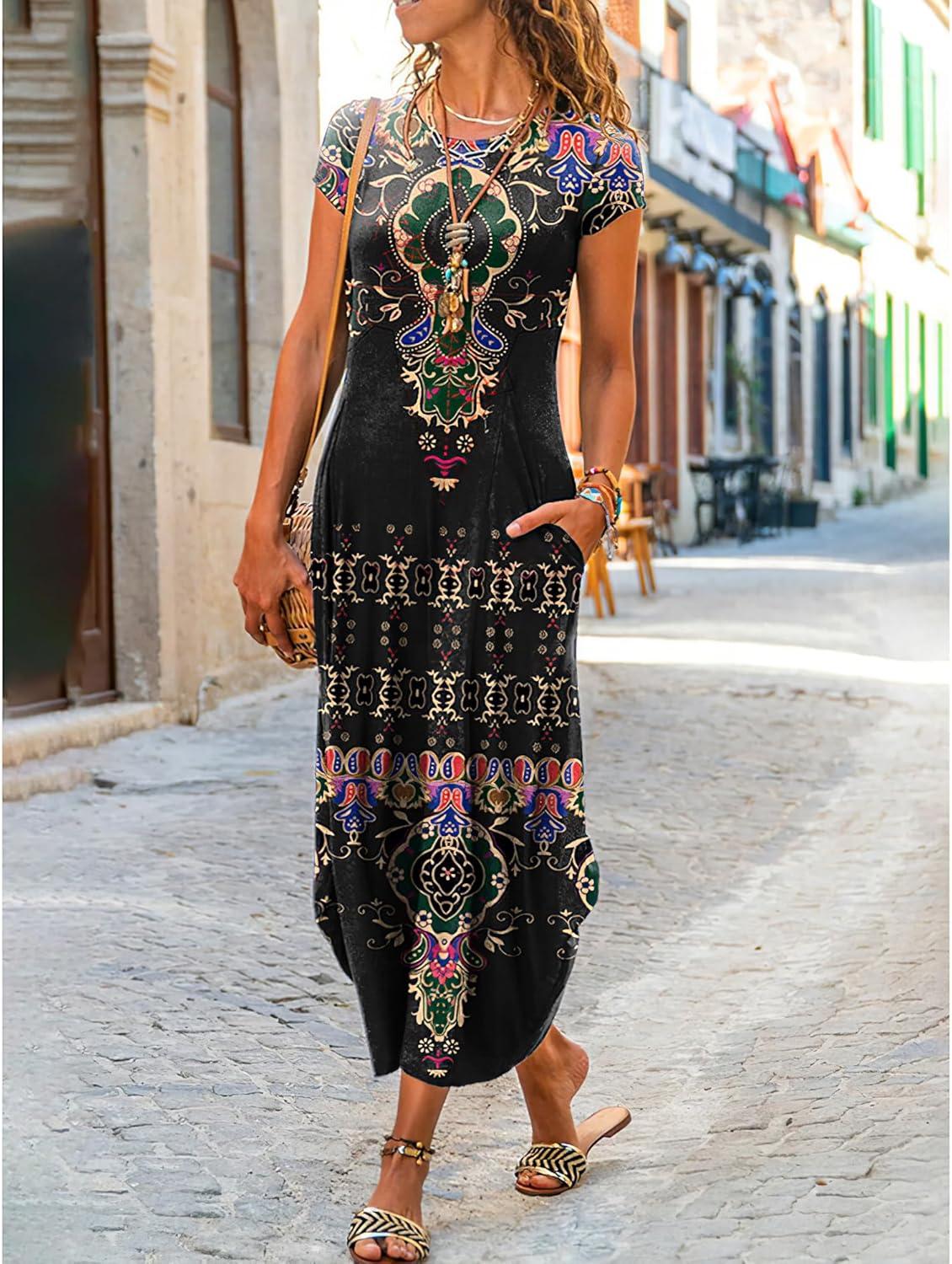 The dress promptly caught our eye with its vibrant ethnic floral ⁢print,perfectly blending boho charm with casual elegance.Crafted from lightweight cotton linen, it offers comfort and breathability, making it ideal for⁣ warm weather. The short sleeves and crew neck design bring a timeless simplicity, while the maxi length ⁤and loose fit create effortless movement‍ and grace. We were also pleasantly surprised ‌by the inclusion of practical side pockets, a feature that adds convenience without sacrificing style.