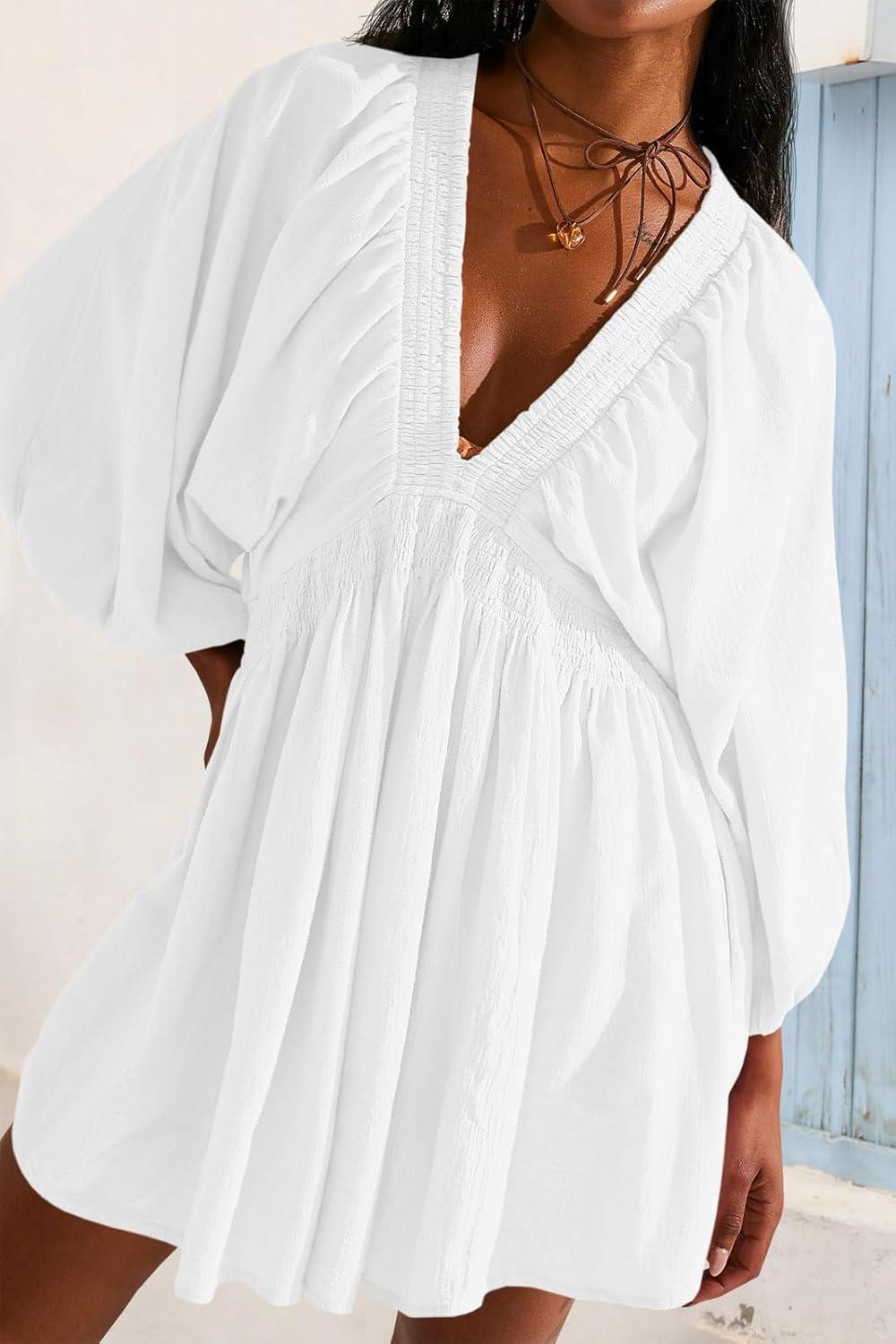 One of the standout features of this dress is its remarkable versatility.Its loose swing design and lightweight, breathable fabric make it an ideal choice for relaxed beach days or casual outings like brunch with friends. The elastic waist and cuffs complement the deep V-neckline to create a flattering yet effortless silhouette. Plus, the handy pockets add practical charm, giving us a convenient place to store essentials or simply rest our hands. Whether paired with simple sandals for daytime ease or layered over a swimsuit, this dress adapts seamlessly to laid-back occasions.