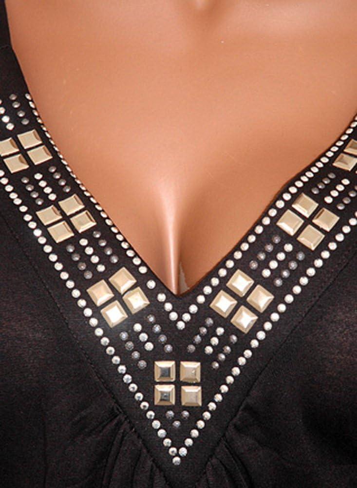 We found this blouse to be a truly versatile piece that flawlessly balances comfort and style. The empire waist design gently sculpts and enhances curves without feeling restrictive, making it suitable for a variety of occasions-from casual outings to more formal events. The cold off-shoulder cutouts add a subtle yet alluring edge, giving you a chance to show a little skin while keeping your arms comfortably covered with the flowing dolman sleeves. The black shade is deep and elegant, accented by shimmering embellishments around the neckline that add a touch of drama and elevate the overall look.