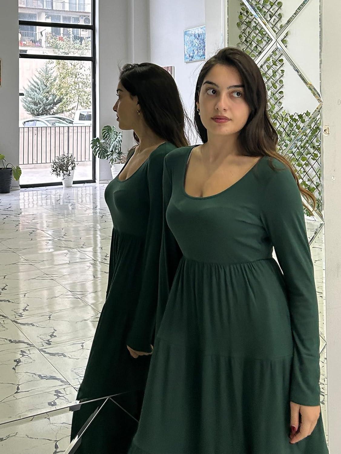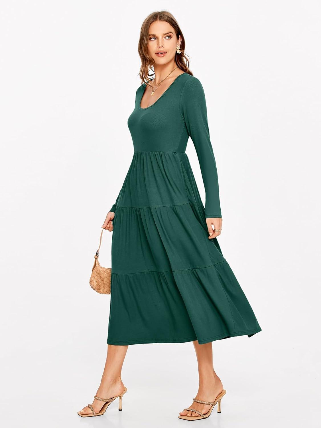 The charm of this dress lies​ in its effortlessly graceful silhouette, capturing the essence ​of fall fashion with a casual yet refined swing maxi design.‌ The ⁤tiered construction flows​ beautifully, creating movement that feels⁣ both playful and complex. We appreciate how the ​long‌ sleeves balance​ the midi length, making it ideal for crisp autumn days without sacrificing⁢ comfort. The gentle U-neckline adds just the right touch of elegance, drawing​ subtle attention⁢ without overpowering ⁢the overall aesthetic. This dress embodies ‍a perfect​ blend of ease and style, giving us confidence‌ whether we’re⁣ out for a casual brunch or ⁢an evening stroll.