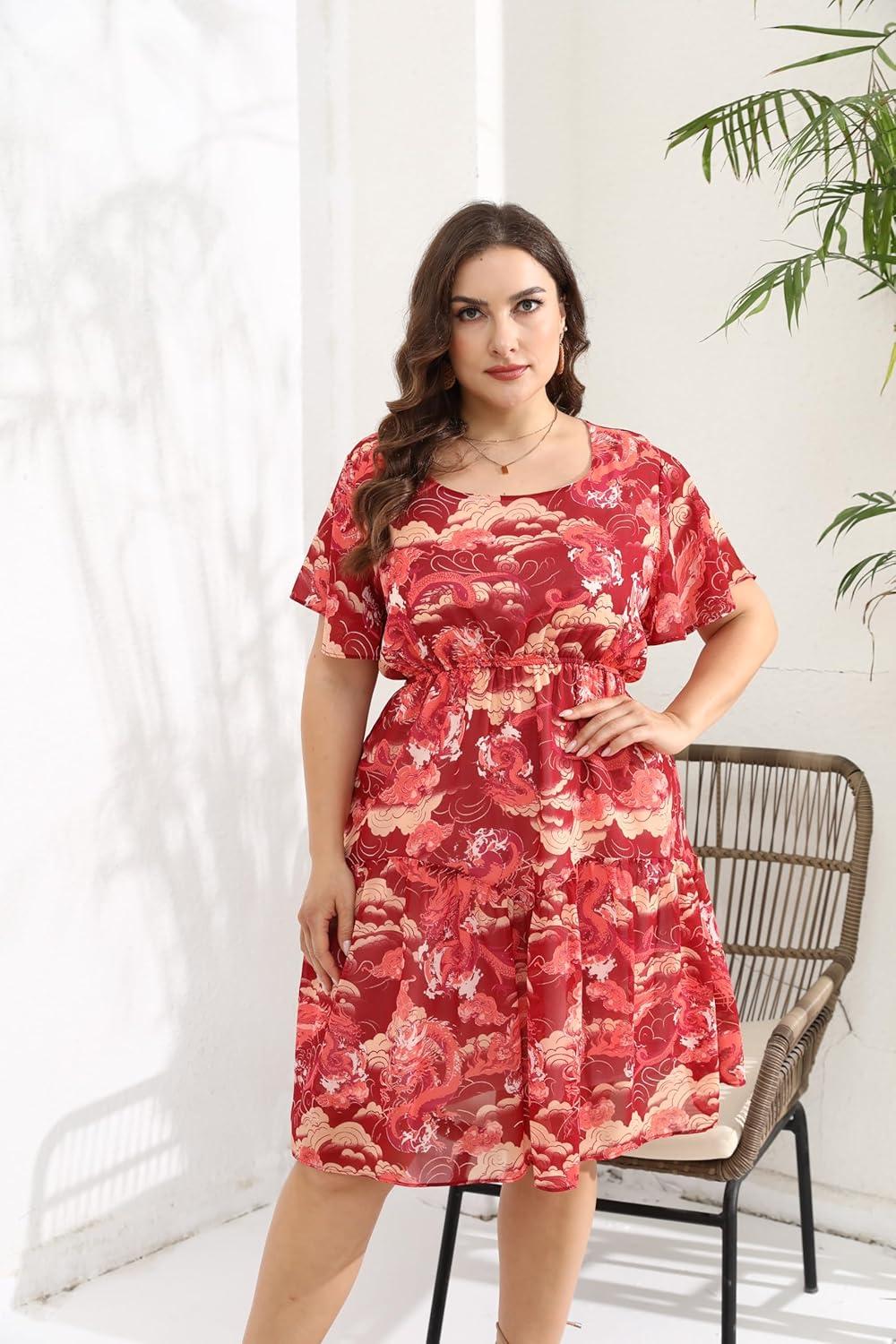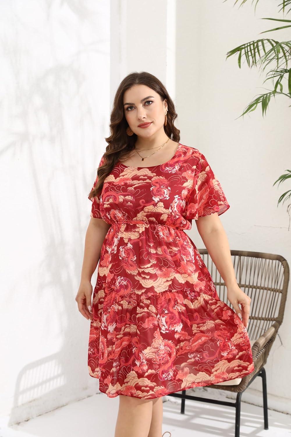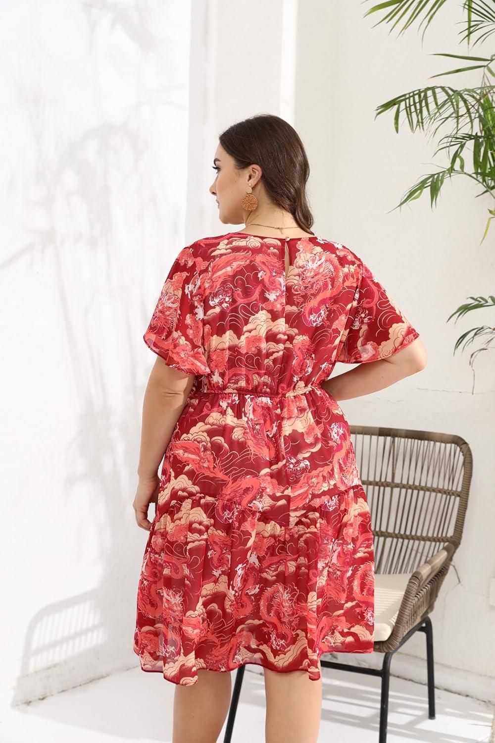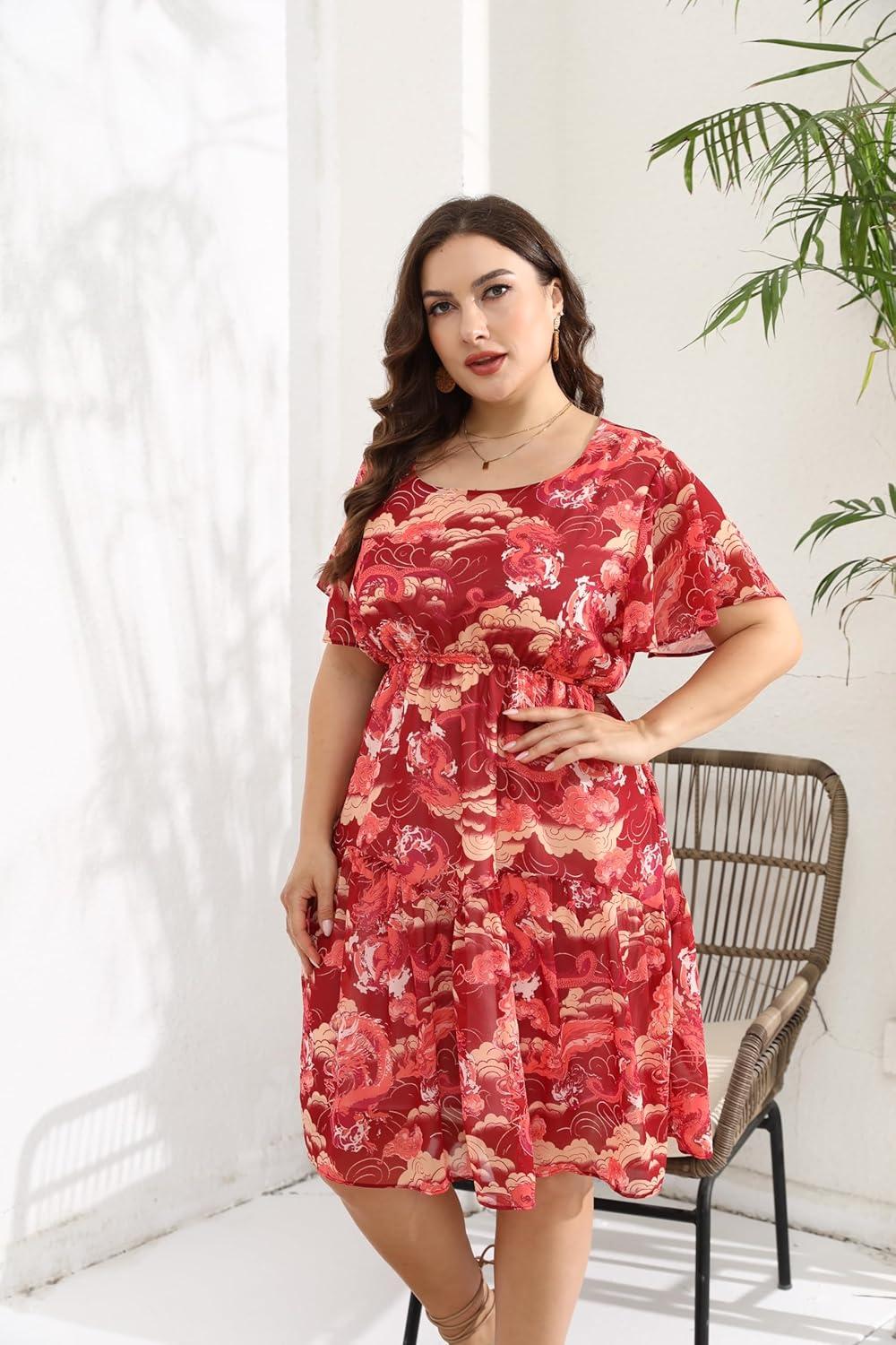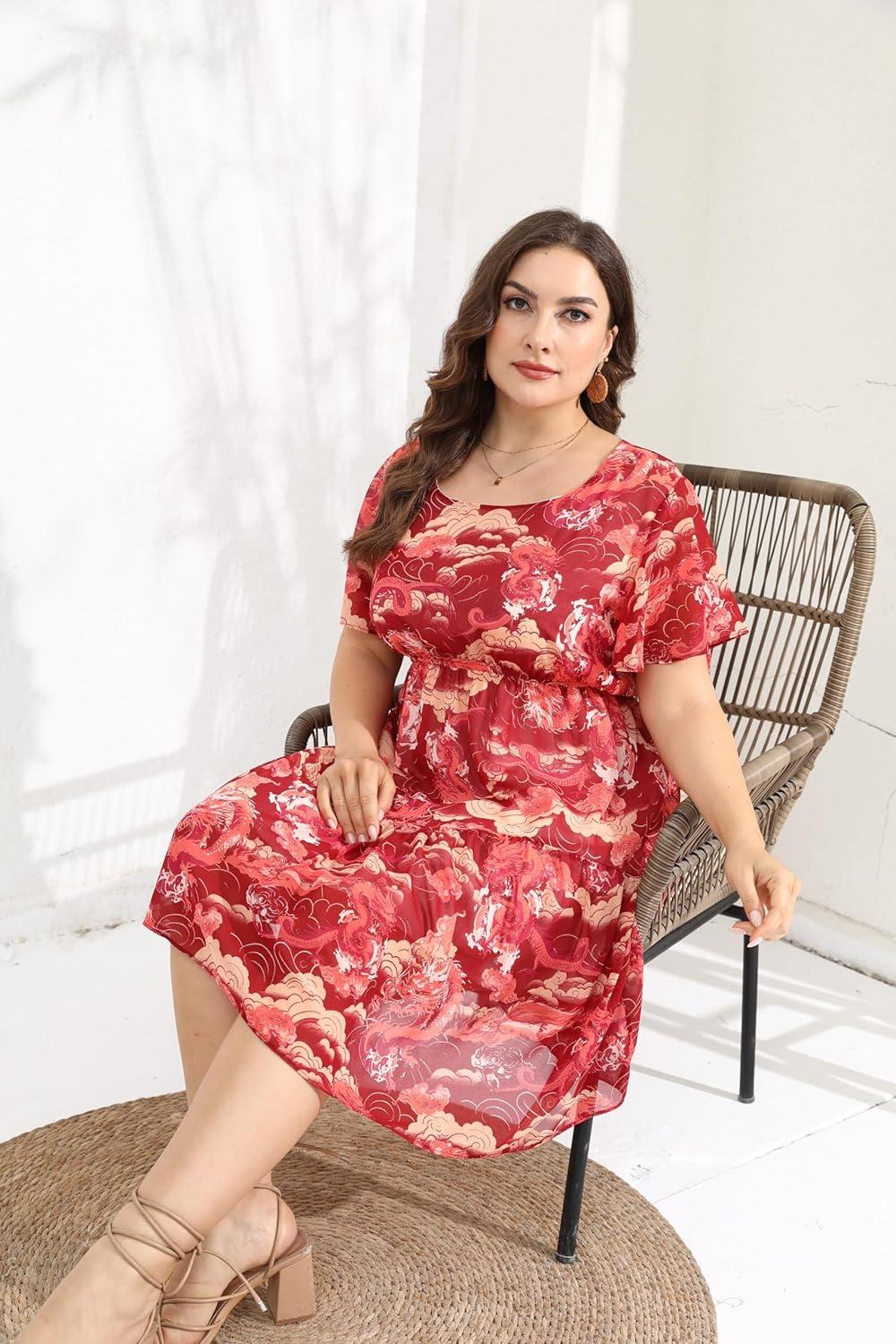 From the moment we first laid eyes on this flowy chiffon sundress, its charming boho vibe and thoughtful design elements immediately caught our attention. The floral print is vibrant yet tasteful, perfectly suited for casual beach days or even more dressy occasions like weddings and parties. The scoop neckline paired with flutter sleeves offers a delicate touch, while the tiered layering adds movement and elegance. We especially appreciated the elastic empire waist, which provides a comfortable fit that flatters a variety of plus-size shapes by subtly hiding the tummy area and accentuating curves.