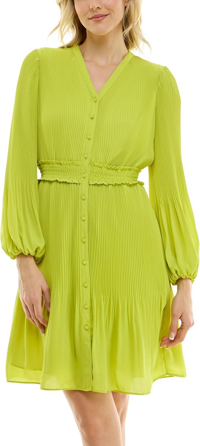 When we first slipped into the Nanette Nanette Lepore women’s Button-Up Fully Lined Dress in Citrine, we promptly appreciated how it balances style and comfort with thoughtful design details like the smock waist and pleated blouson sleeves. The full-bodied pleats add a gentle movement that feels both elegant and understated, making it a versatile piece that can easily transition from a casual brunch to a more polished office look.Fully lined for added structure and comfort, the dress’s vibrant Citrine hue injects a cheerful yet sophisticated pop of color into our wardrobes. Throughout our experience, this dress proved to be a reliable staple that blends timeless appeal with contemporary ease, inviting us to rethink what we expect from a button-up dress.