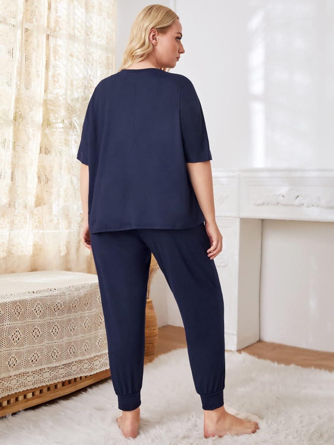 We found this two-piece sleepwear set to be a cozy and stylish option for those seeking comfortable loungewear in plus sizes. The fabric feels soft against the skin,making it ideal for relaxing evenings or restful nights.The short sleeve T-shirt features a casual letter print that adds a subtle touch of personality without being overpowering.the matching pants come with an elastic waistband that provides adaptability, ensuring a comfortable fit without feeling restrictive. it strikes a nice balance between casual style and practical comfort.