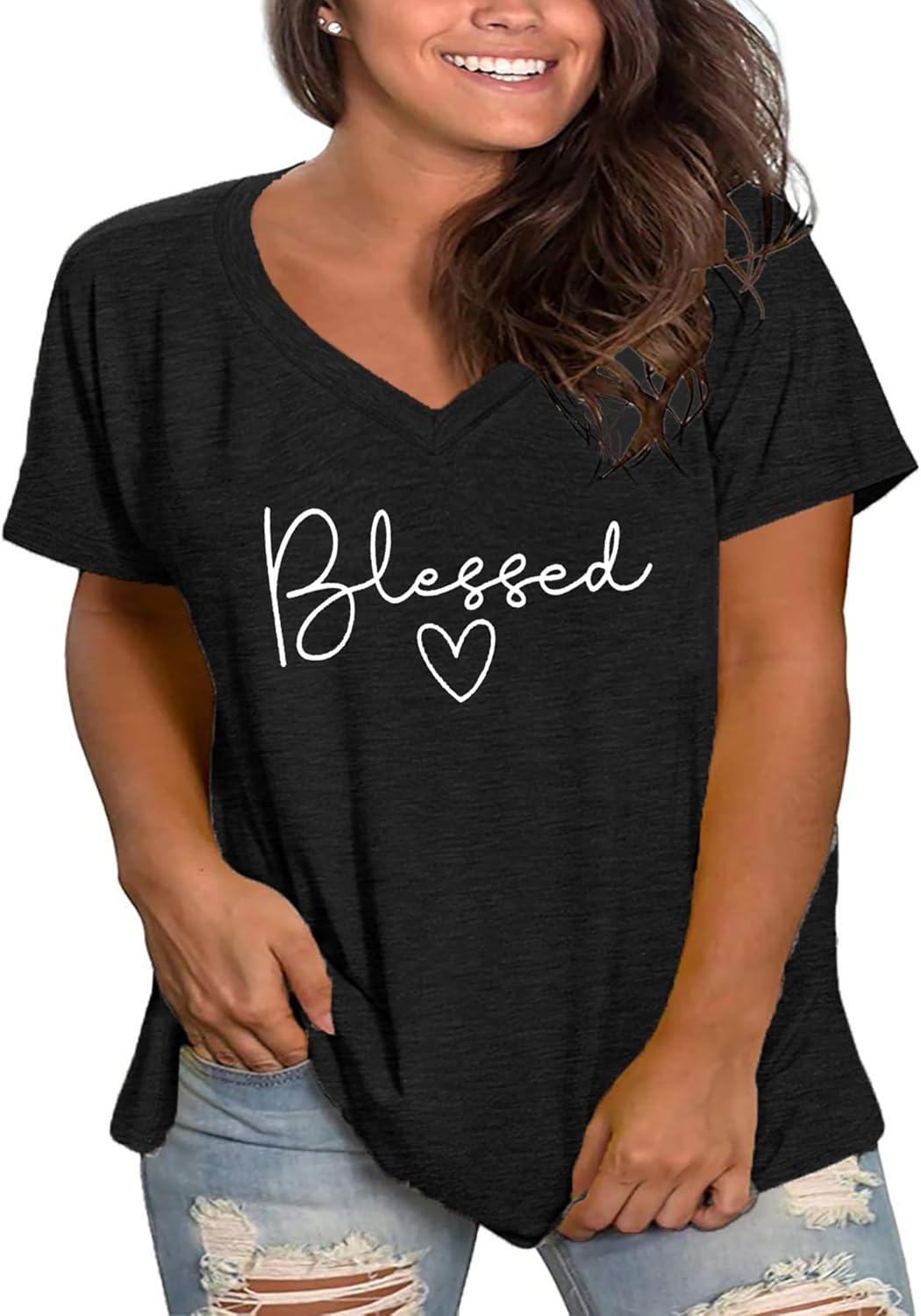Check out the Plus Size Blessed V-Neck Summer Tees on Amazon and find your perfect fit today!
