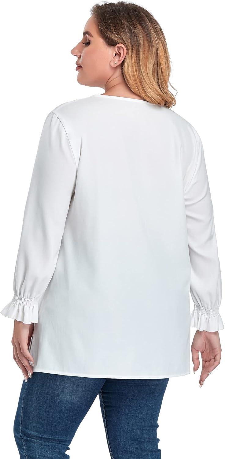 We found this blouse to be a graceful blend of vintage charm and modern comfort, especially designed with plus size women in mind. The textured chiffon fabric adds a subtle uniqueness, while the classic bow tie neck elevates any outfit with a touch of elegance. The button-down front makes it easy to wear, and the modest puff sleeves add just the right amount of flair without overwhelming the silhouette. Plus, the side split and hi-low hem create a flattering flow that moves beautifully throughout the day, whether in a professional office setting or a casual outing. It’s a piece that balances style and comfort thoughtfully, avoiding the pitfalls of overly restrictive fits.