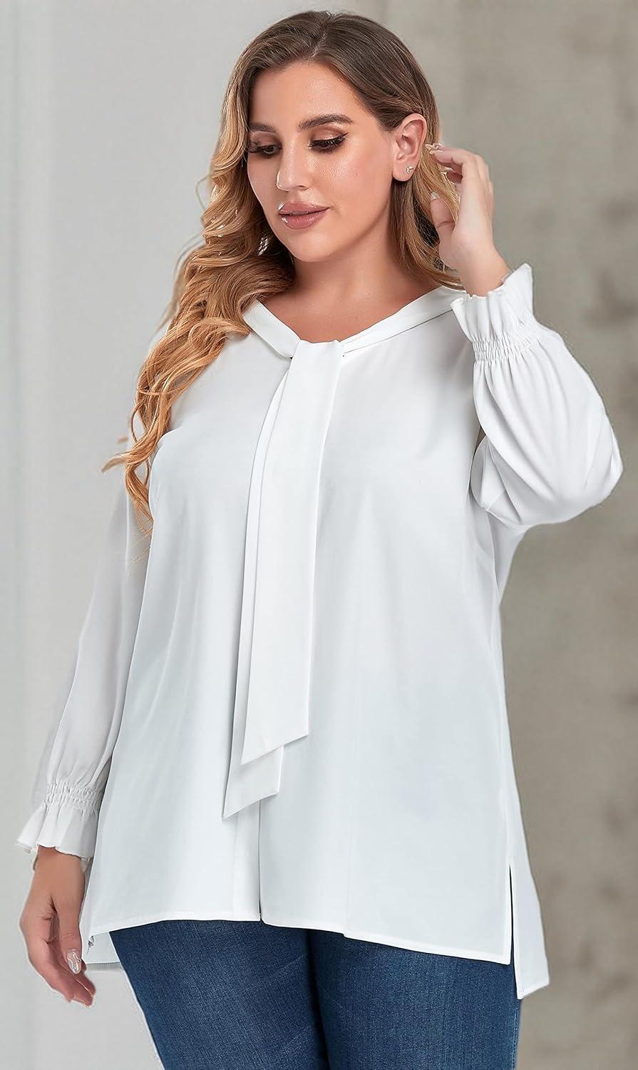 Understanding the importance of fit in plus size fashion, this blouse eliminates the uncertainty often encountered when ordering online.Our team found the button-down style and bow neck not only elevate the look but also provide great versatility in styling for office settings and more casual occasions alike.