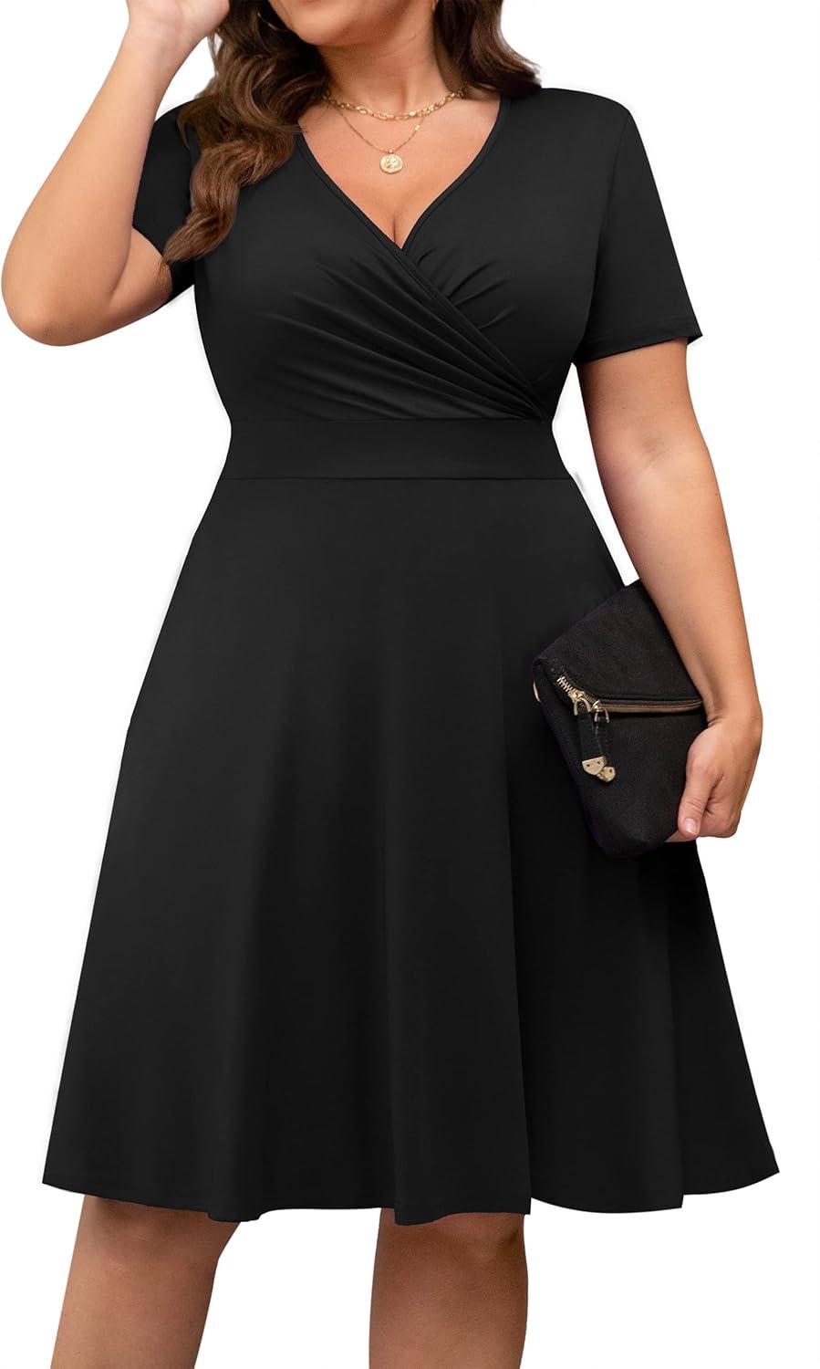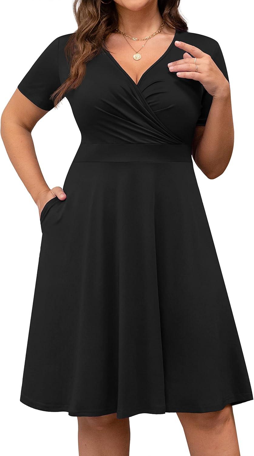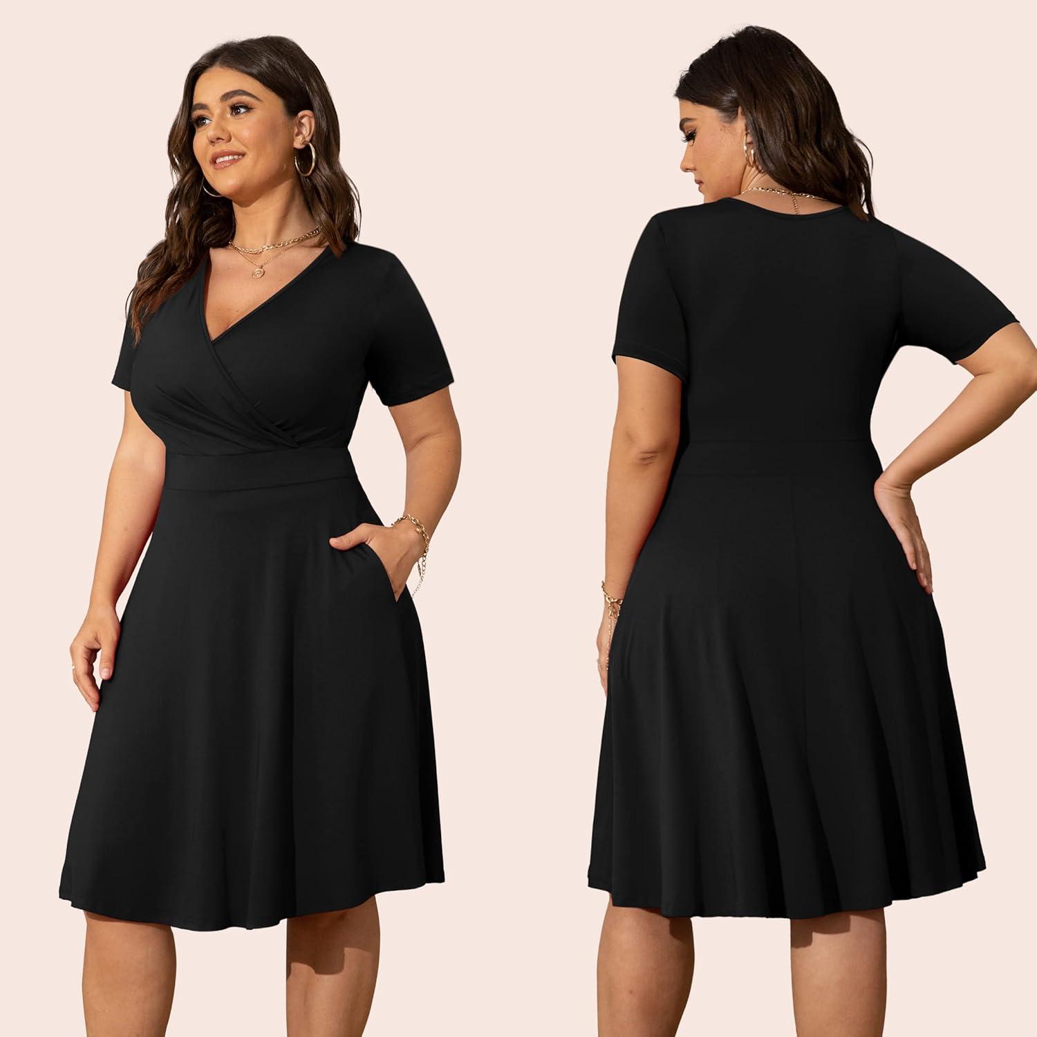 After trying this dress, we appreciate its blend of comfort and style, making it an excellent choice for warm weather occasions. The lightweight fabric, composed mainly of polyester with a touch of spandex, offers a flattering stretch that complements plus-size figures effortlessly. The wrap V-neck design creates a chic silhouette while the short sleeves keep things breathable. One of the standout features is the practical pockets, which add convenience without sacrificing elegance. Whether dressing up for a wedding guest event or keeping it casual for a cocktail party, this piece adapts well to various settings, making it a versatile addition to any wardrobe.