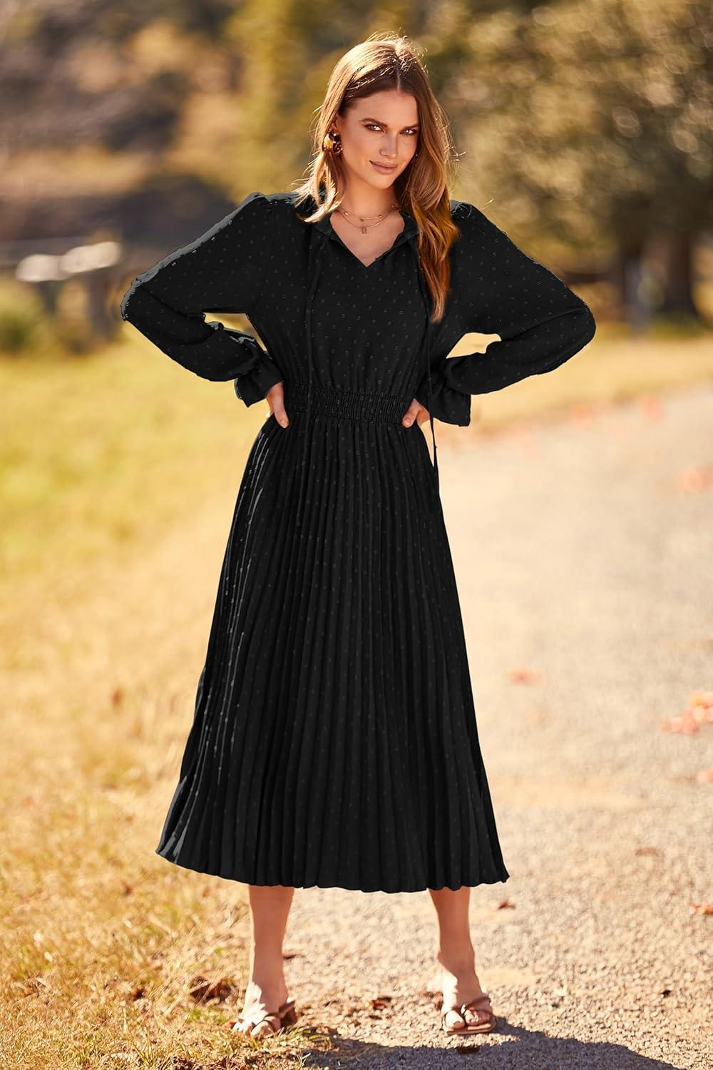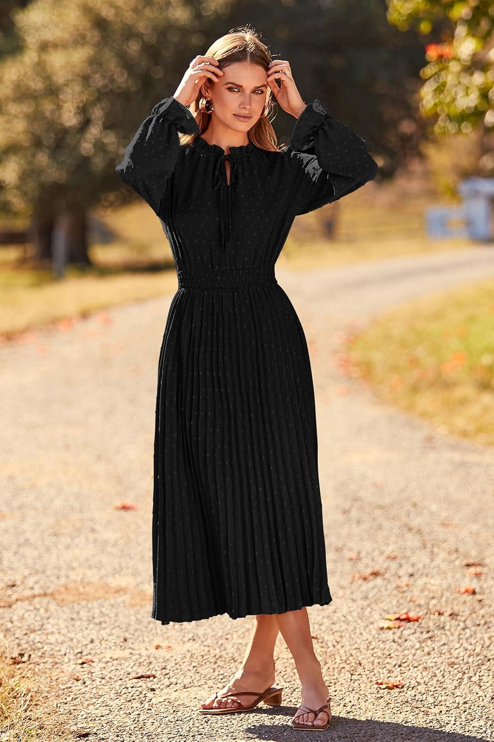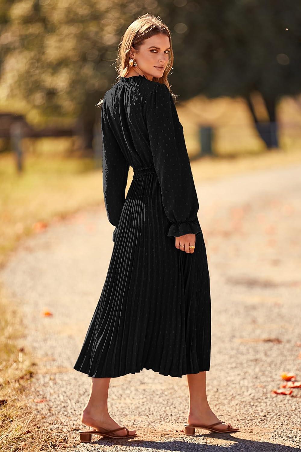 From the moment we unboxed ⁣the dress, its elegant design instantly caught our attention. Featuring a delicate swiss​ dot texture that lends ‌a ‌subtle sophistication, the dress combines a flattering ‌V neck with long puff sleeves,⁣ perfectly balancing casual and chic. The pleated A-line ​silhouette enhances flow and movement, creating a graceful ⁤shape without sacrificing comfort. It’s a versatile piece that easily adapts to various‌ occasions,‍ whether it’s a casual⁢ day out or a⁤ refined evening gathering. The lightweight fabric⁤ feels soft against the skin,while the midi length offers ‍an‍ effortlessly stylish look that isn’t too formal or too casual.