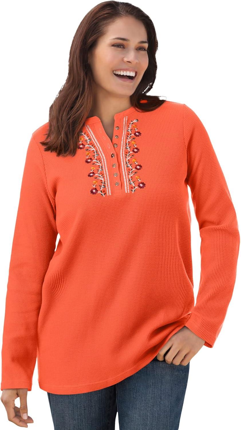 shop the ​Woman Within Plus size ​Embroidered Thermal Henley Tee now and discover your new favorite go-to top!