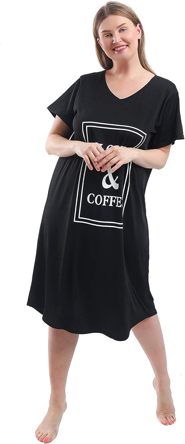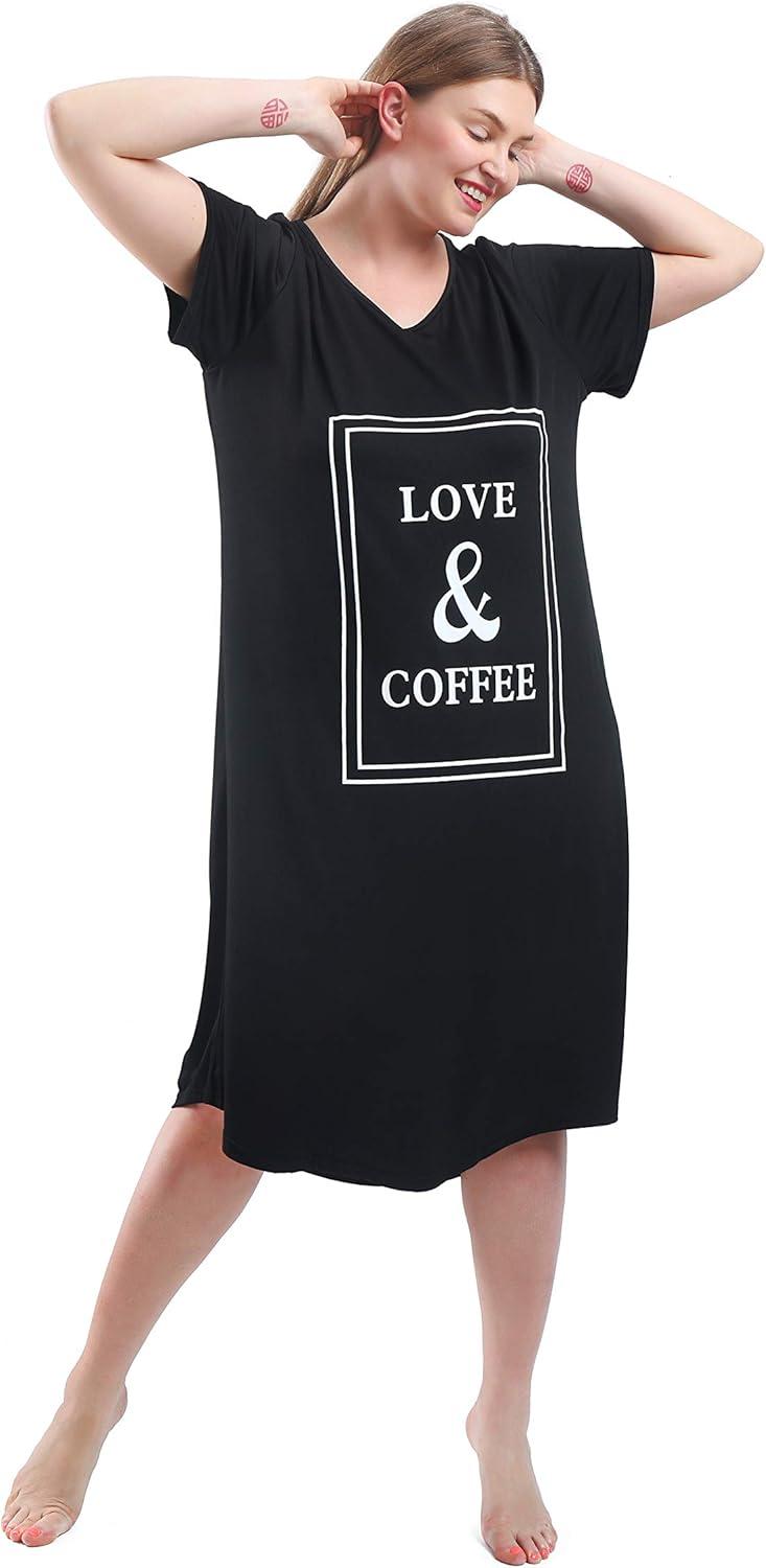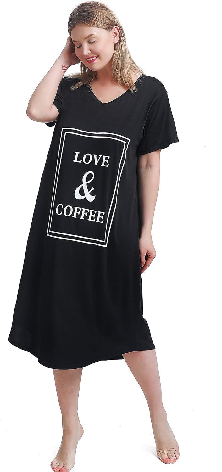We found this nightgown to be a perfect blend of comfort and style, especially tailored for those who appreciate breathable and soft fabrics that accommodate curves effortlessly. Its lightweight, sweat-wicking material keeps you cool throughout the night, making it ideal for anyone prone to night sweats. The relaxed fit paired with the stretchy fabric ensures no bunching or restriction, while the charming “Love & Coffee” slogan adds a playful yet chic touch that works beyond just bedtime.Whether you’re lounging at home or heading out for a quick errand, this piece feels versatile enough to suit a variety of casual occasions.