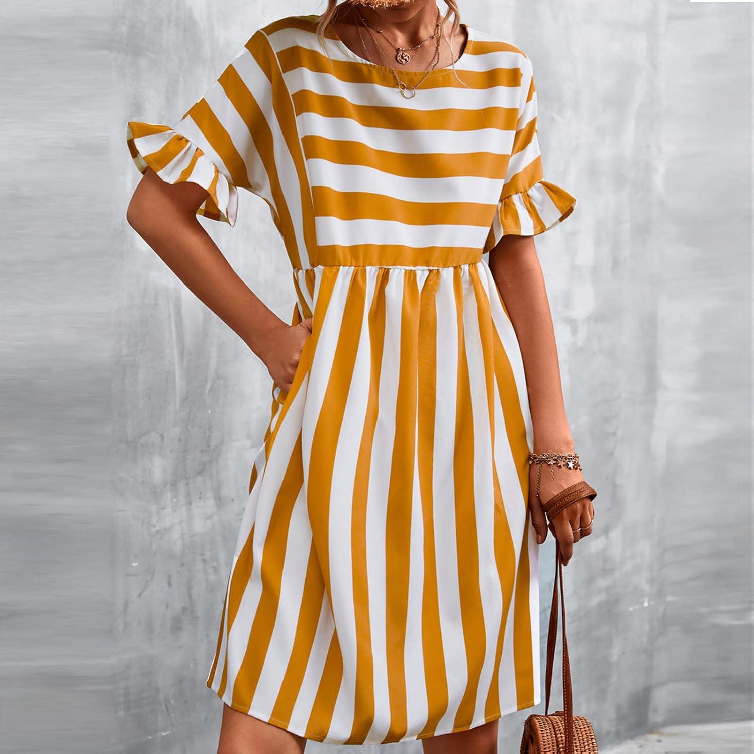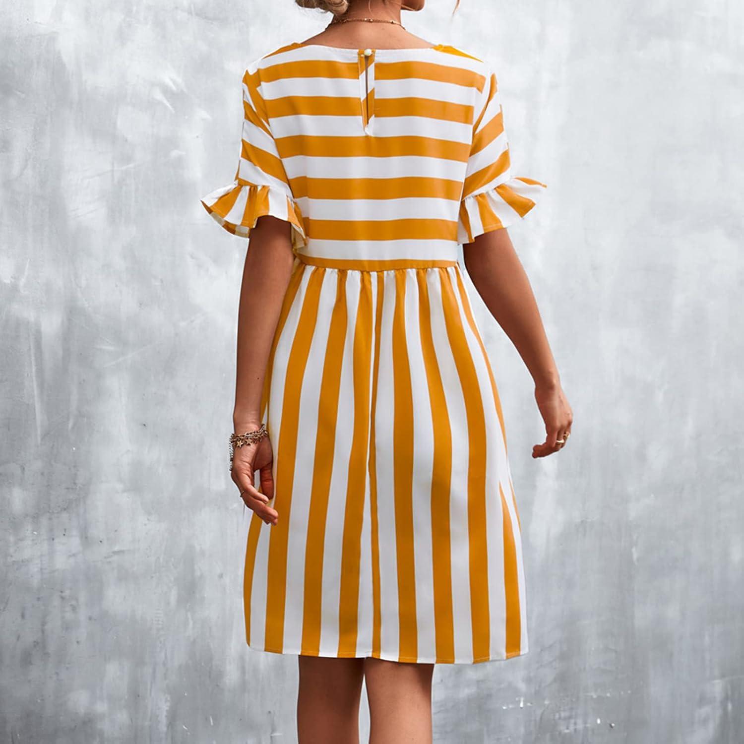 After spending some⁢ time with the‍ Women’s Summer⁣ Ruffle​ Short Sleeve ⁢Striped Midi T-shirt Dress, we’ve gathered our thoughts on what makes this dress ​stand out, and where it might fall a bit short. ‍Here’s what we​ found: