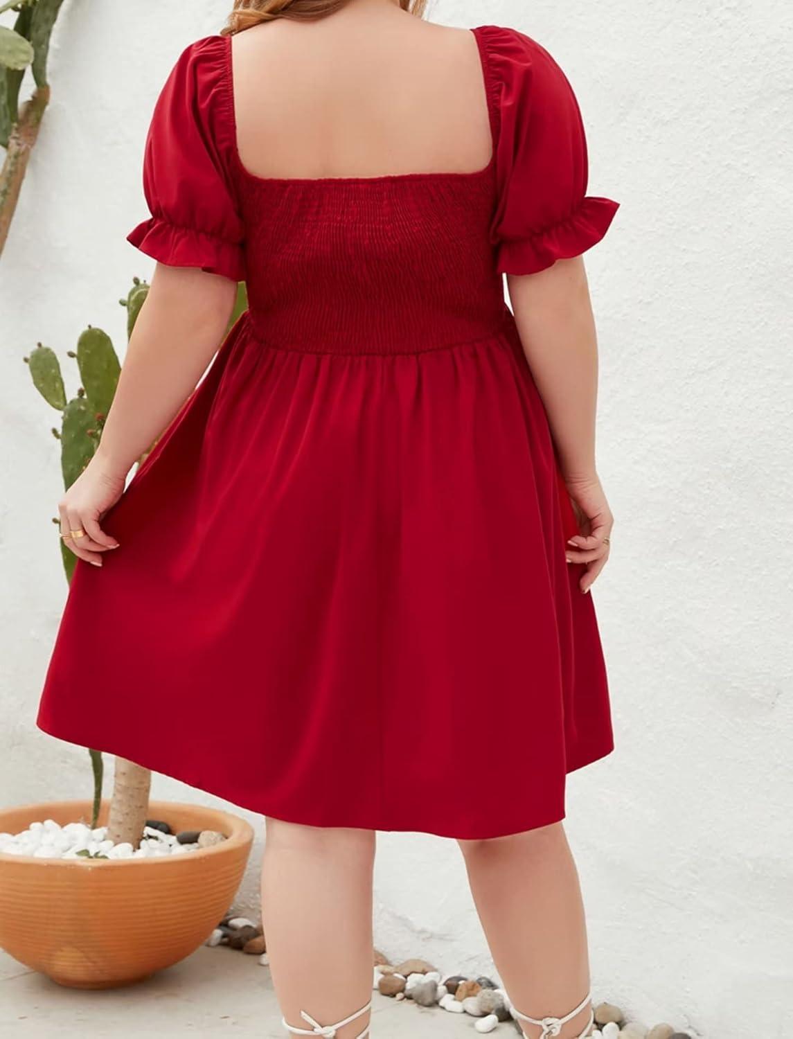 Finding the perfect dress that combines comfort, style, and a flattering fit can be a challenge, especially when shopping plus-size options. ThatS why we were excited to try the Womens Smocked Short Sleeve Square Neck Ruffle Midi Babydoll Swing Dress in Wine Red,size 1X. This dress promises a breezy, elegant silhouette wiht its smocked bodice, ruffled details, and a convenient belt to cinch the waist. Over the past few weeks, we’ve put it to the test through casual outings and dressier occasions alike, paying close attention to the fabric feel, fit, and how it holds up over time.Join us as we share our firsthand experience with this summer-ready,plus-size midi dress designed to bring a playful yet polished vibe to your wardrobe.