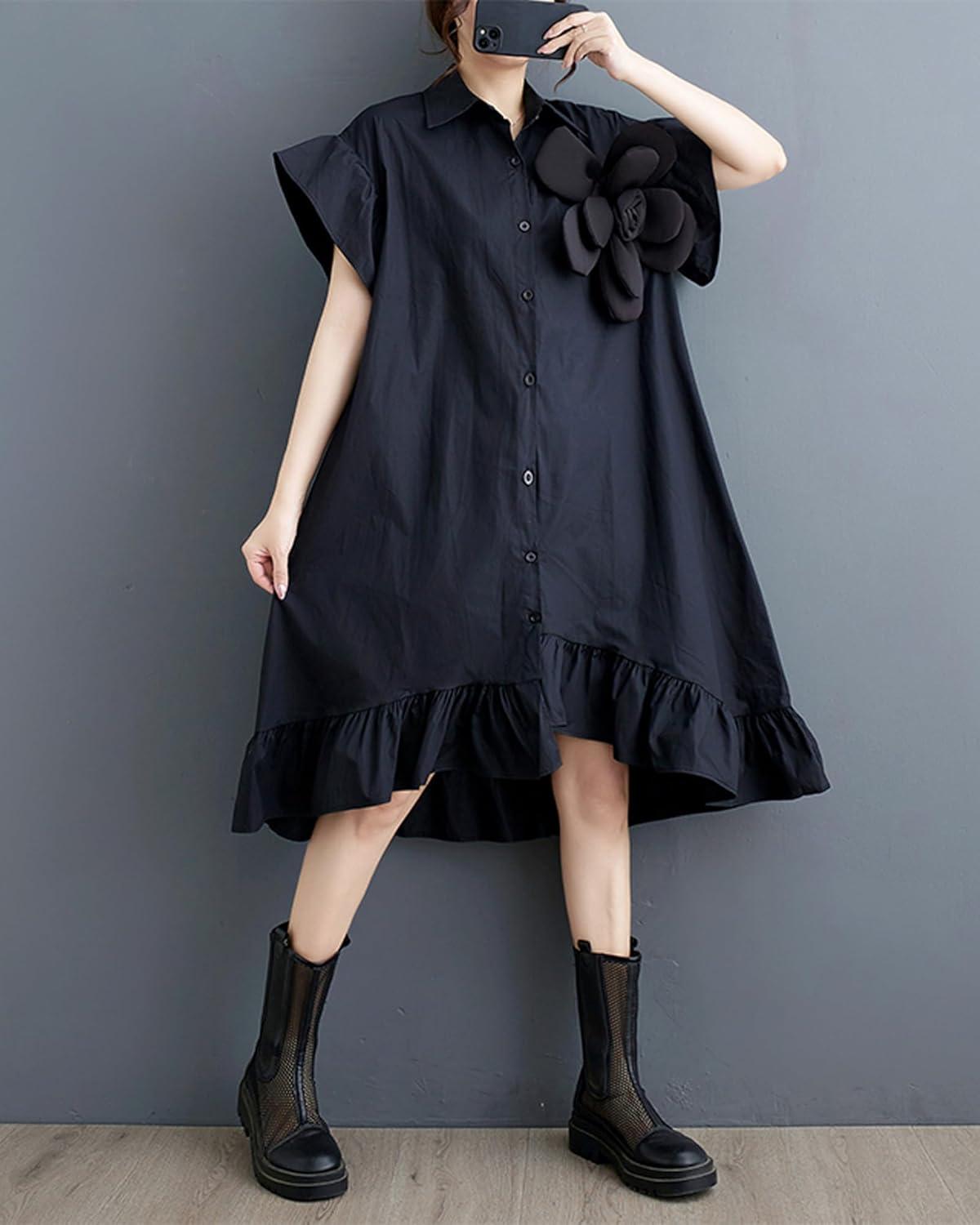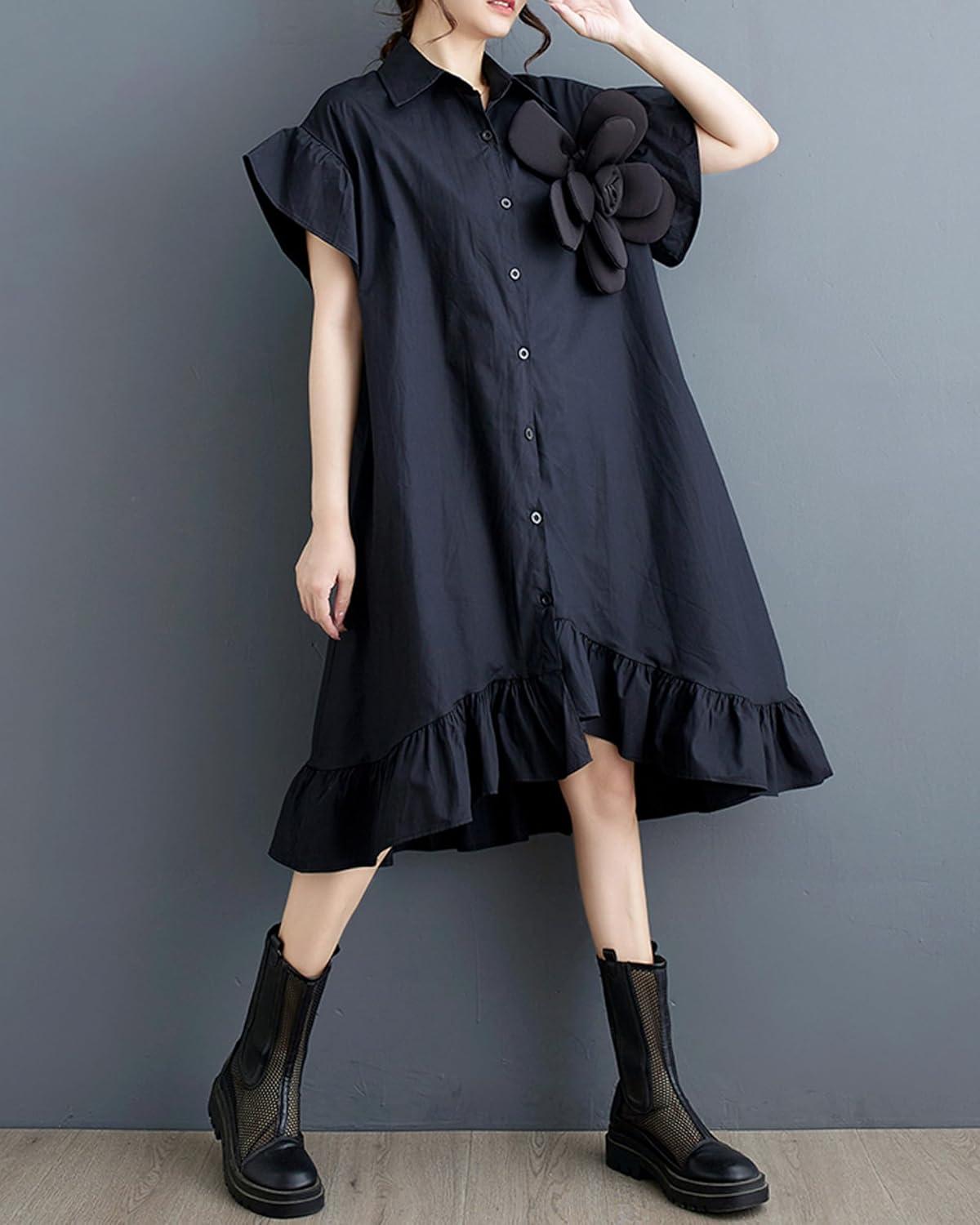After trying out this dress, we find it to be a delightful choice for anyone seeking a comfortable yet stylish outfit. The loose fit paired with the irregular ruffle hem gives it a breezy and effortlessly chic look, perfect for casual outings or relaxed gatherings. The flower button-down front and V-neck design add subtle feminine touches without overwhelming the overall simplicity. It’s especially suited for those who appreciate clothing that offers mobility without sacrificing flair. If you favor breathable fabrics and flattering cuts that don’t cling too tightly, this dress will likely meet your expectations.